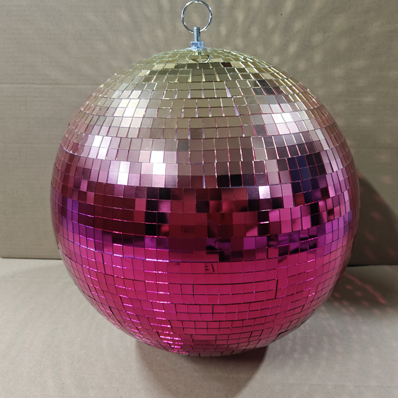 Large disco ball size: 15cm 20cm 25cm 30cm 35cm 40cm 45cm 50cm 60cm 80cm 100cm 120cm 150cm Materials: Plastic foam inside and glass out side Color: gold, rose gold, red, blue, green, pink, black, white, purple... accept PMS color.